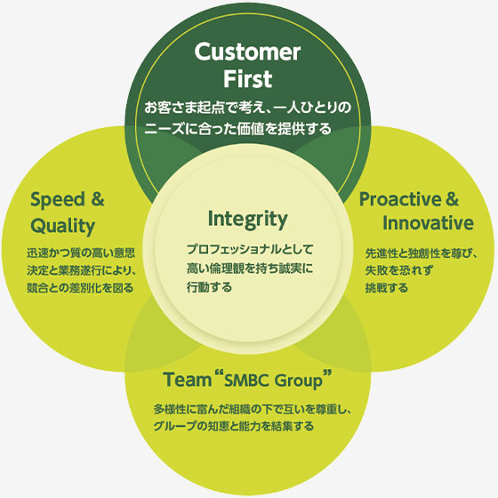 金融のプロフェッショナルとして、役社員一人ひとりが高いインテグリティをもって、私たちだからこそできる新しい価値創造を目指して取り組んでまいります。
