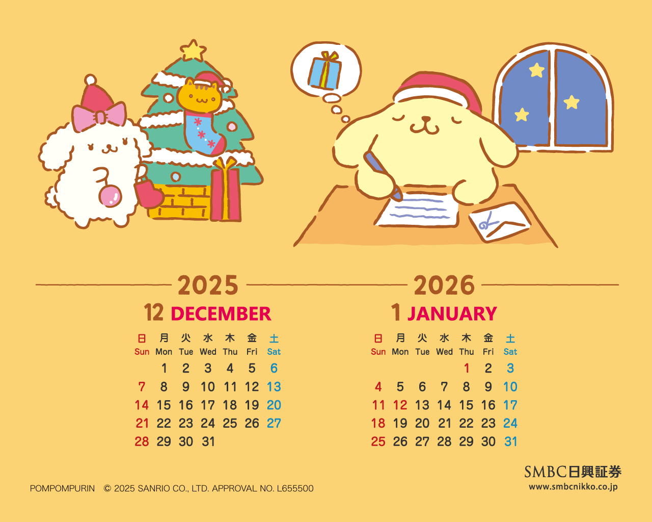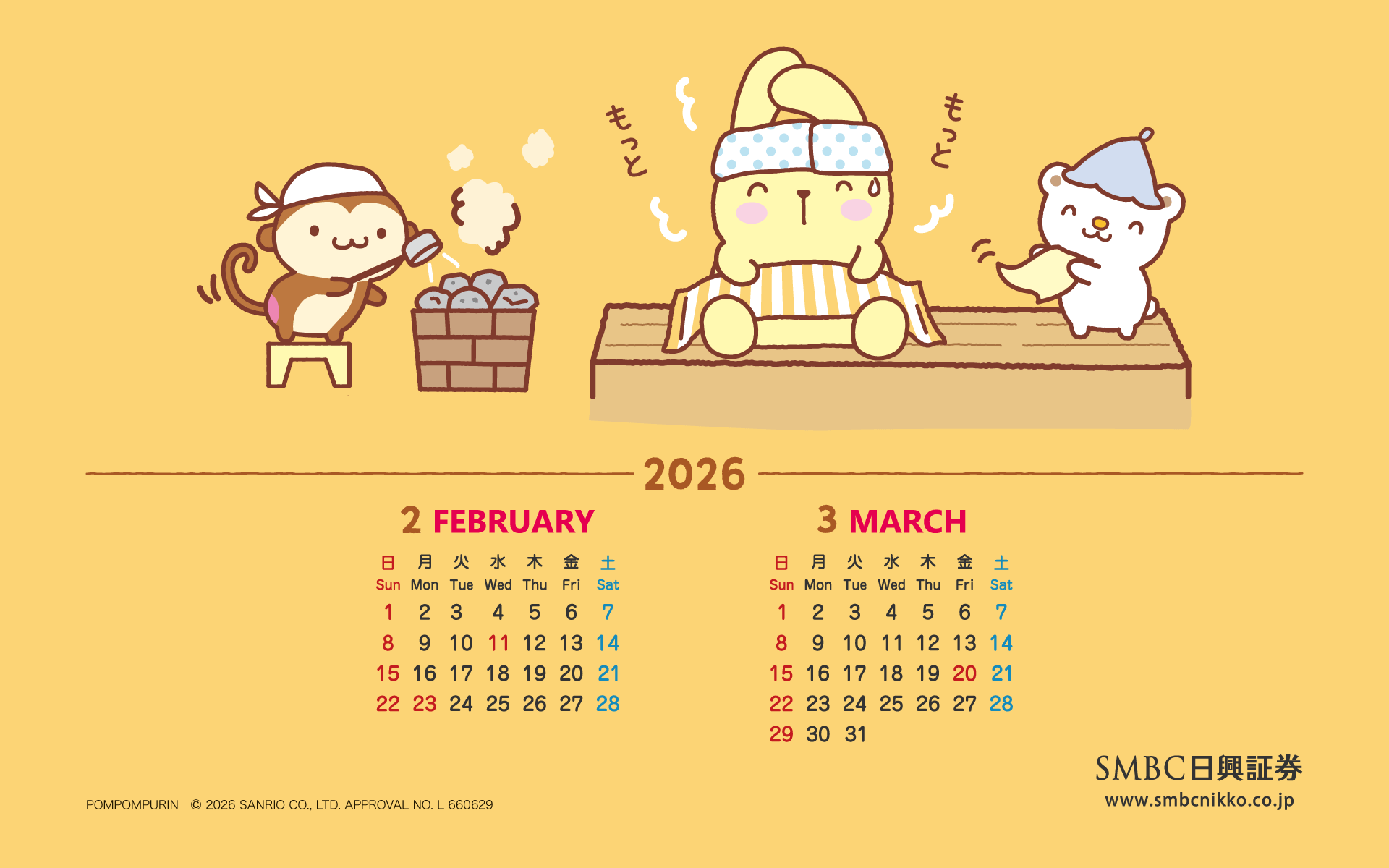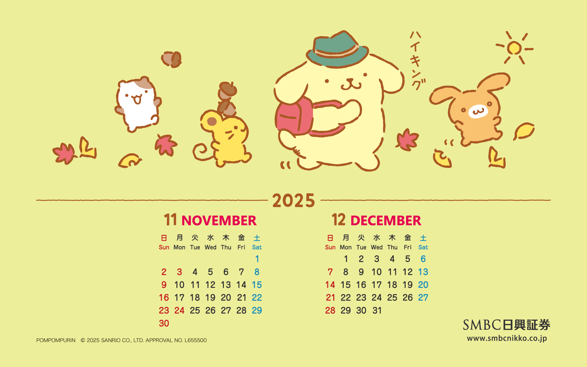 当壁紙の著作権は、株式会社サンリオに帰属します。また、SMBC日興証券株式会社に無断での複製・再配布を禁止します。当壁紙上の情報につきまして、当社はその正確性・完全性を保証するものではありません。