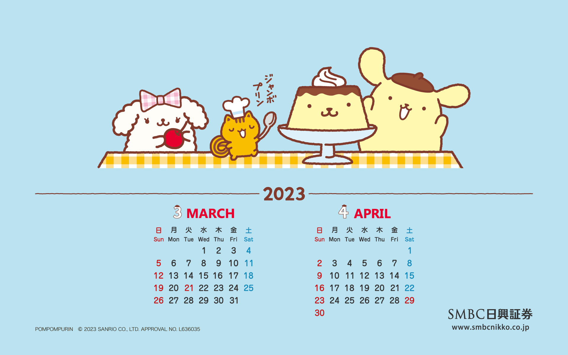 当壁紙の著作権は、株式会社サンリオに帰属します。また、SMBC日興証券株式会社に無断での複製・再配布を禁止します。当壁紙上の情報につきまして、当社はその正確性・完全性を保証するものではありません。