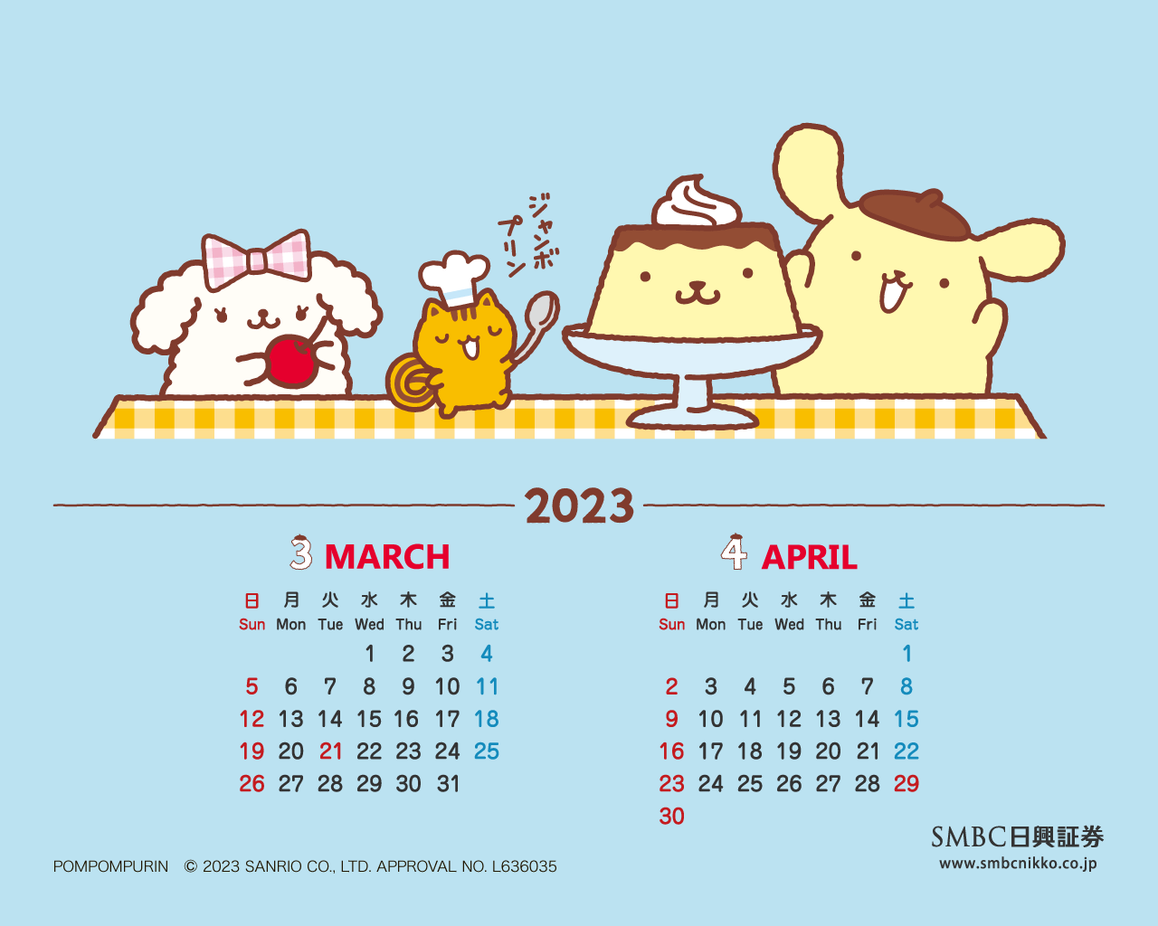 サンリオの人気キャラクター「ポムポムプリン」の壁紙カレンダーを、無料でダウンロードしていただけます。