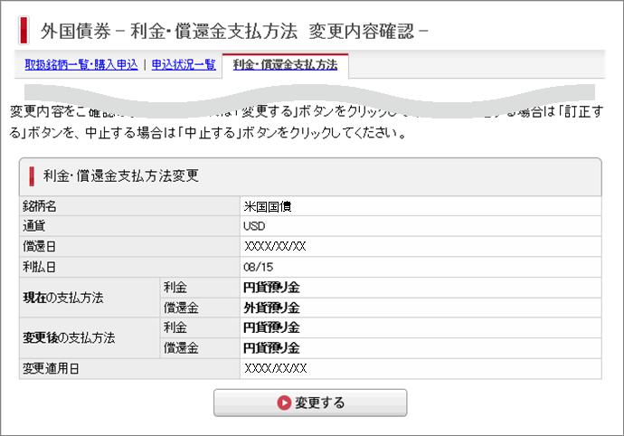 STEP 3外国債券 利金・償還金支払方法 変更内容確認