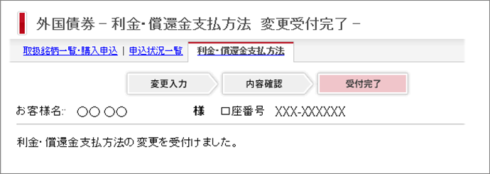 STEP 4外国債券 利金・償還金支払方法 変更受付完了