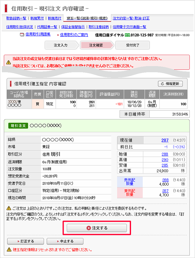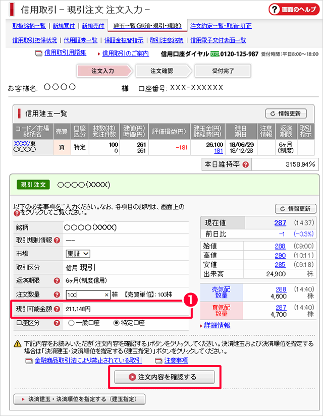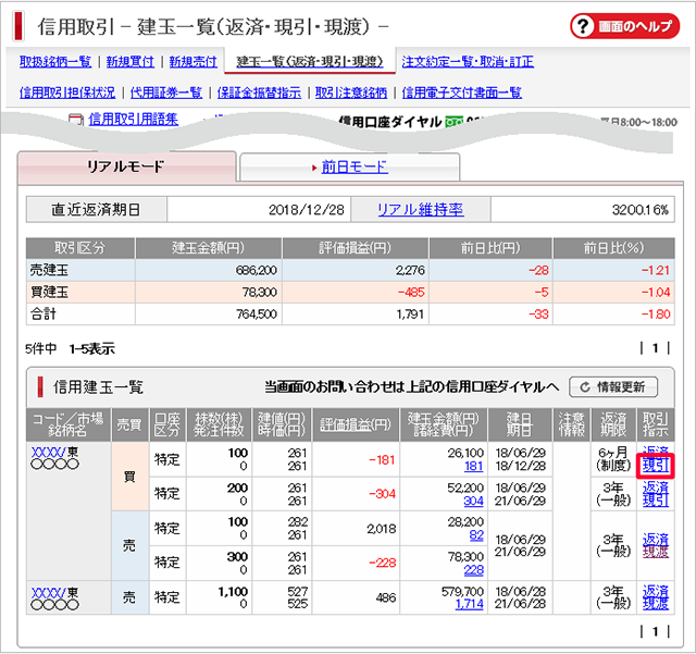 4-2.現引注文(お取引>信用取引>建玉一覧(返済・現引・現渡))