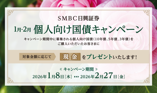 上記の手数料等およびリスク等は商品ごとに異なりますので、当該商品等の契約締結前交付書面や目論見書またはお客さま向け資料等をよくお読みください。なお、目論見書等のお問い合わせは当社各部店までお願いいたします。