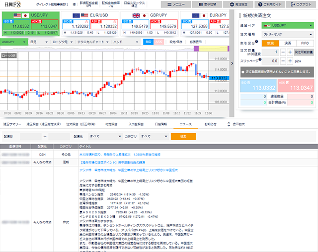 日興イージートレードで配信している為替ニュースとは別に、日興FXではニュースの配信元を2社に増やし、為替に関するニュースをより多角的に収集することが可能になります。
