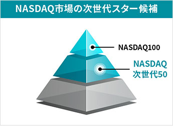 NASDAQ次世代50とは、将来的にNASDAQ100への組み入れが見込まれるNASDAQ市場に上場する企業50社をさします。これらの企業は、世界中の人々の生活を変えるような革新的な技術を有しており、次世代のスター企業となることが期待されます。過去には、フェイスブックやネットフリックスなど現在のスター企業がNASDAQ次世代50を卒業しました。