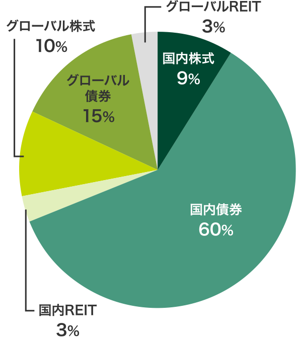 - ※円グラフはfund eyeの投資スタイル【安定型】における資産構成比を表示。
