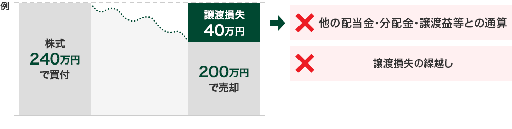 - NISA口座で発生した譲渡損失は、通算・繰越しの対象外です
