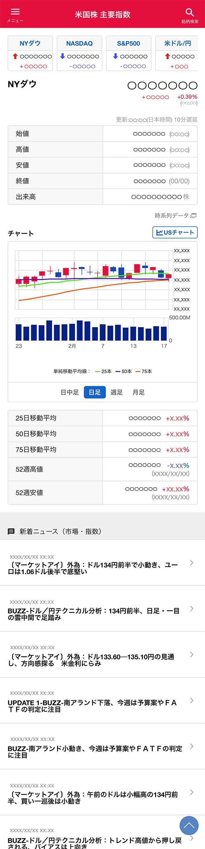 NYSE(ニューヨーク証券取引所)、NYSE Arca(ニューヨーク証券取引所 アーカ)、NYSE American LLC(ニューヨーク証券取引所 アメリカン)およびNASDAQ(ナスダック)に上場している銘柄の株価、チャート、比較チャート、企業情報、ランキング、検索結果および米国指標、為替、金利のチャートがご覧いただけます。