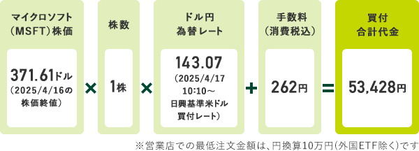 (株価)×(株数)×(為替レート)+(手数料)=(支払代金)