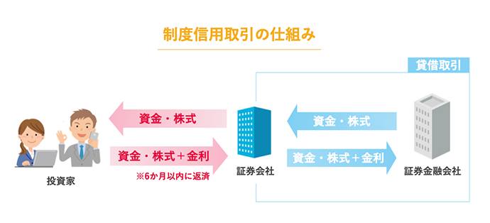 続いて、制度信用取引と一般信用取引を個別に詳しくみていきましょう。制度信用取引の構図を解説します。