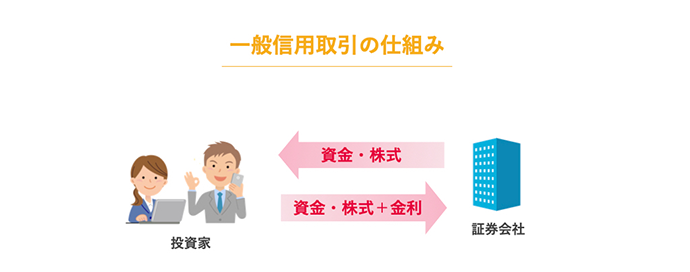 一般信用取引は投資家と証券会社の間だけで信用取引が完成するので、投資家にとっては自由度が高い信用取引といえるでしょう。