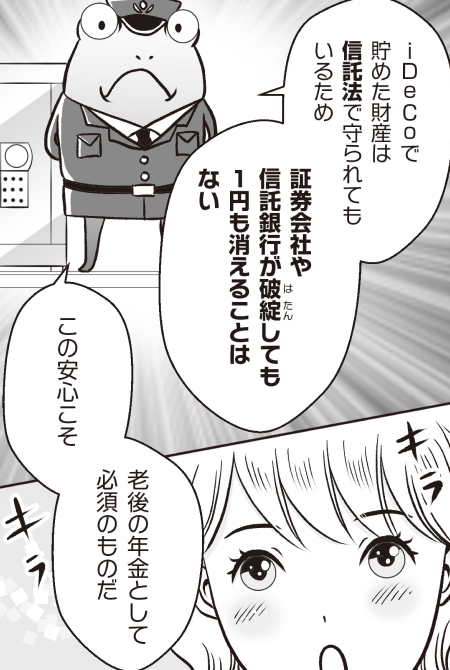 iDeCo(個人型確定拠出年金)で積立をされる場合、加入資格を満たしている必要があります。運用の方法(運用商品)に係る情報提供はジャパン・ペンション・ナビゲーター株式会社が行います。iDeCo(個人型確定拠出年金)に加入すると、原則60歳までお客さまの資産を引き出すことができません。運用方法はお客さまにご決定いただきます。運用リスクはお客さまご自身が負うことになります。お客さまの運用成果が将来の受取額に反映されます。運用成果によって投資元本を下回ることがあります。口座管理などに必要な手数料はお客さまにご負担いただきます。