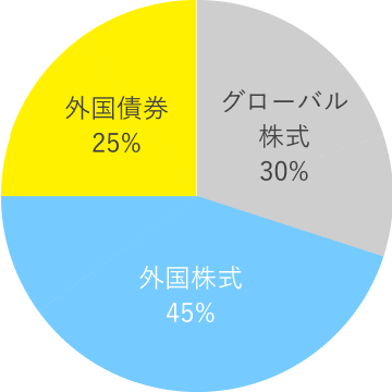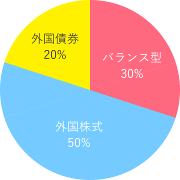 老後までの時間が長く、ある程度のリスクは許容できるあなた。期待収益を向上させるため、株式中心のポートフォリオにしてみては?年を重ねるにつれ、債券型や国内資産での運用の割合を増やして値動きの変動を抑えた運用へシフト!