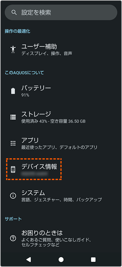 2.「デバイス情報」をタップします。