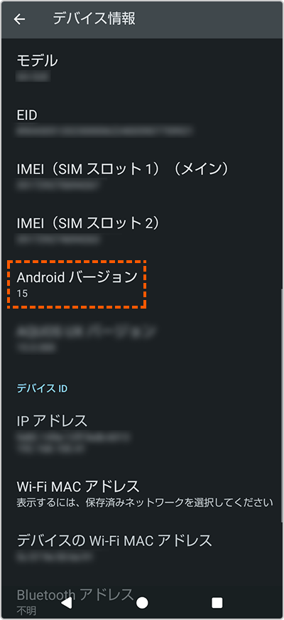 - ※「端末情報」や「ソフトウェア情報」等と表示される機種もあります。