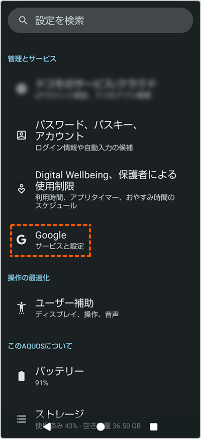 - ※パスワードと自動入力で「Google」と表示される機種もあります