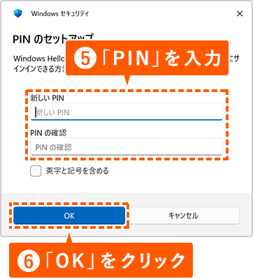 6-3. 任意のPIN(数字等)を入力して、OKをクリックします。