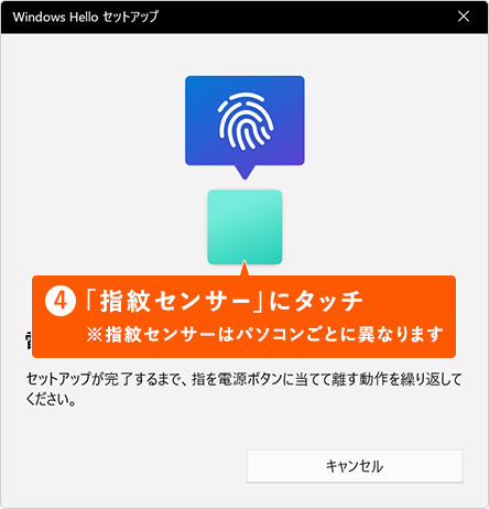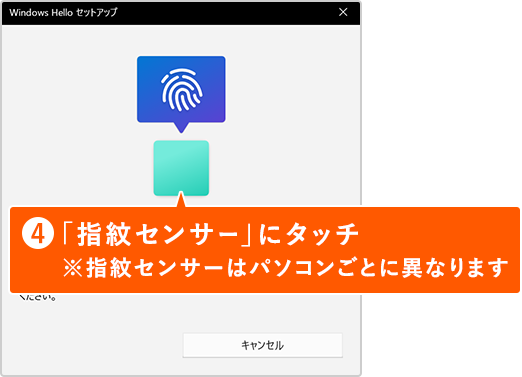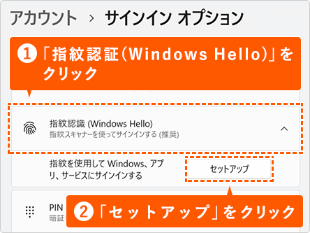 7-1. 「指紋認証(Windows Hello)」の「セットアップ」をクリックします。
