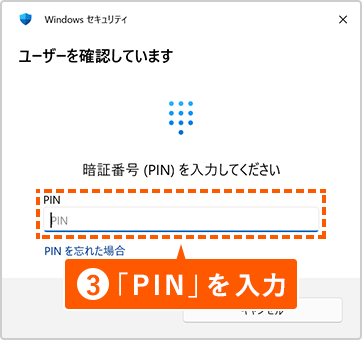 8-2. ユーザ確認のため設定している(項番7で設定した) PINを入力します。