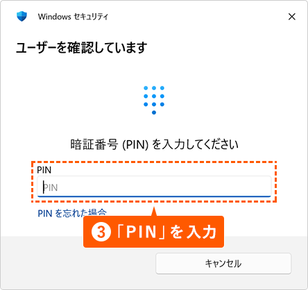 7-2. ユーザ確認のため設定している(項番6で設定した) PINを入力します。