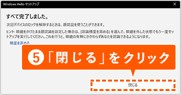 8-3. 画面の案内に従って顔のデータを登録します。「すべて完了しました」と表示されたら、「閉じる」をクリックします。