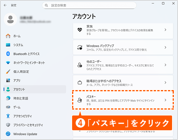 パスキー登録には、Windows Hello( PIN、指紋認証、顔認証等)の設定が必要です。