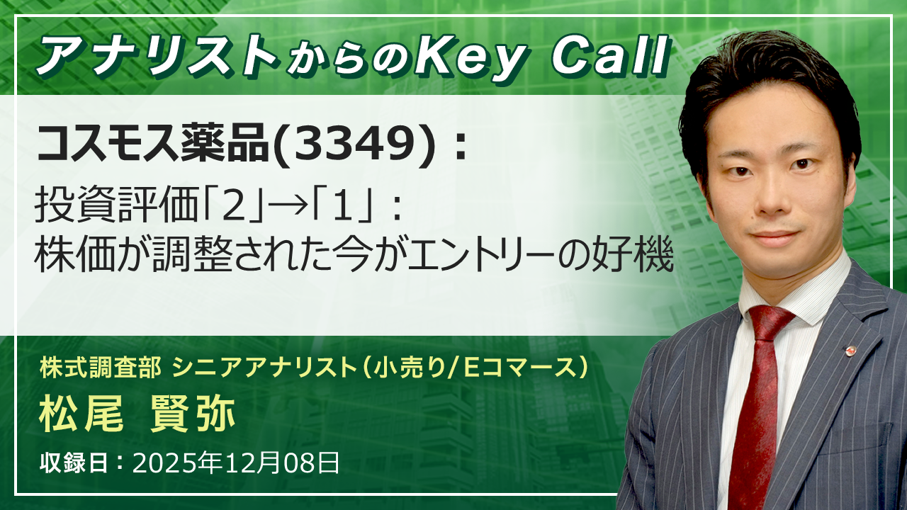 コスモス薬品(3349):投資評価「2」→「1」:株価が調整された今がエントリーの好機(03:21)