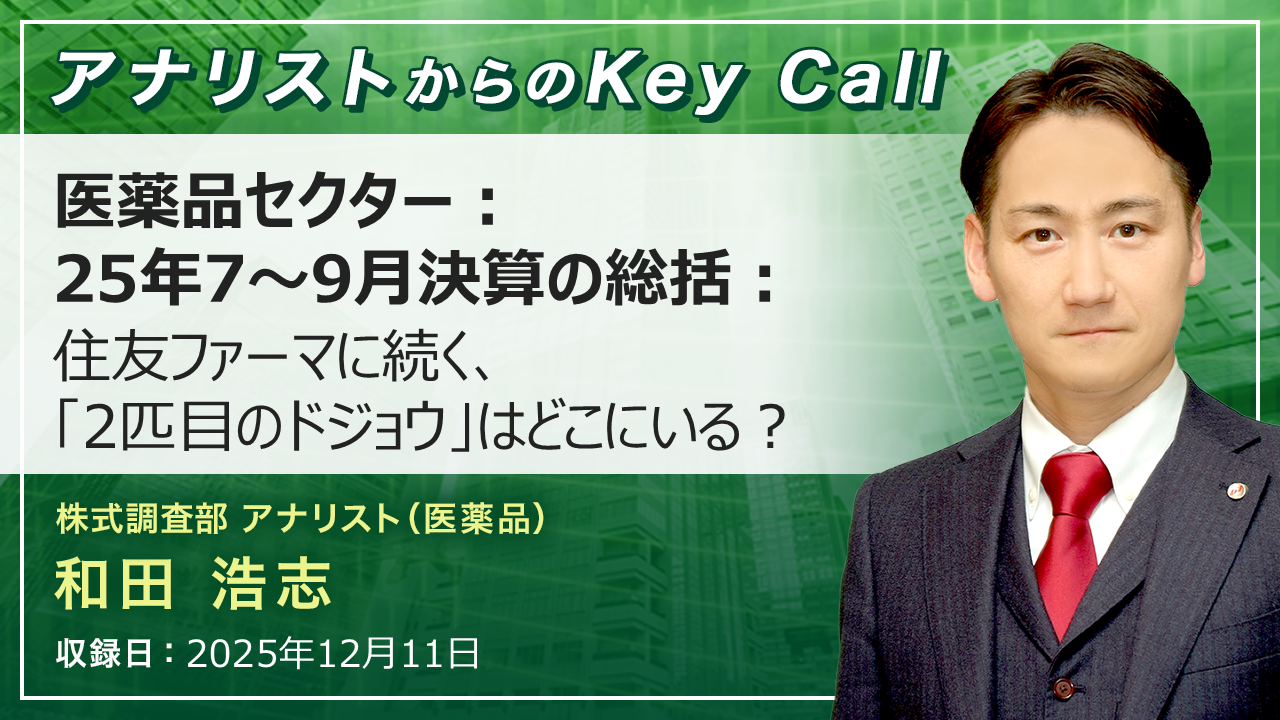 医薬品セクター:25年7〜9月決算の総括:住友ファーマに続く、「2匹目のドジョウ」はどこにいる?(03:10)