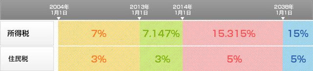 • (注)2037年までは、すべての所得税額に対して復興特別所得税(所得税額×2.1%)が上乗せされます。