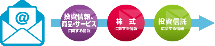 「当社からのご案内」をはじめとした各種ご案内や、お取り引きに役立つさまざまな情報をEメールでタイムリーにお届けするサービスをご利用いただけます。