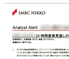 | Analyst Alert | 随時 | 緊急報道に対する弊社アナリストのコメントを提供いたします。 ※レポート発行日の翌営業日に掲載されます。 |