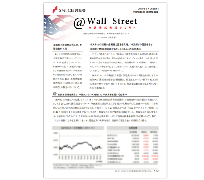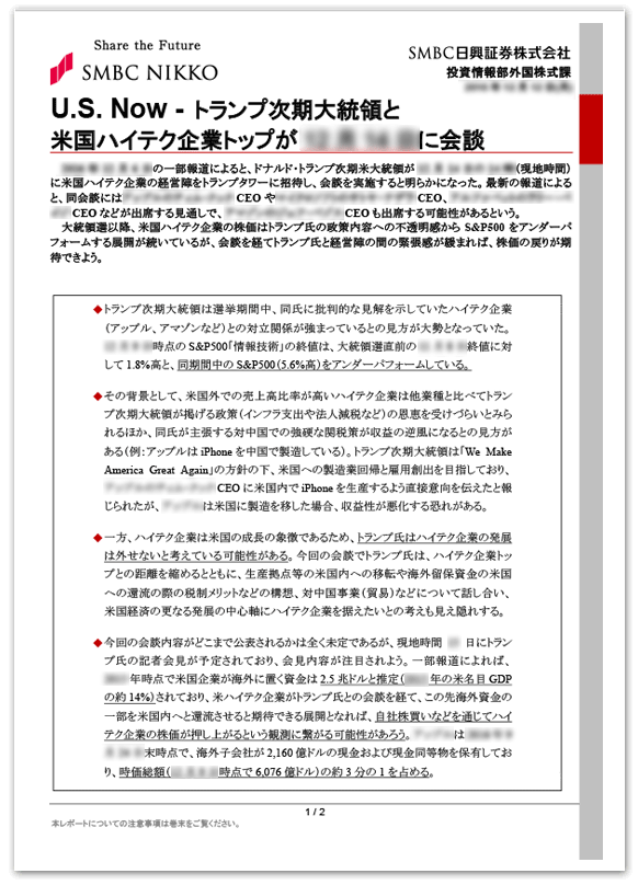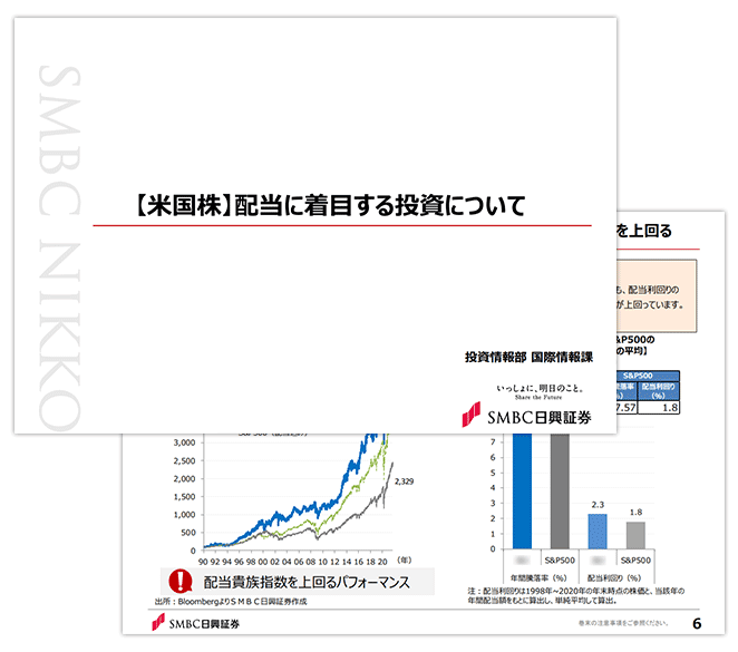当ページの内容はSMBC日興証券が有価証券の売買その他取引等を誘引する又は投資勧誘を目的として提供するものではありません。投資判断の最終決定は、ご自身の判断と責任で行ってください。