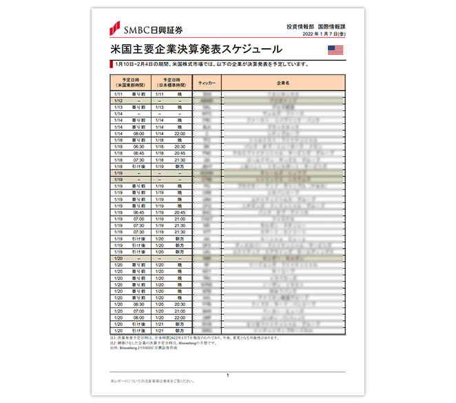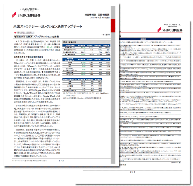 | 米国ストラテジー・セレクション | 随時 | 米国株式市場において中長期的に有望と考えられる「米国ストラテジー・セレクション」銘柄の決算レポートです。 |