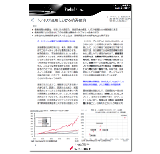 | Prelude(プレリュード) | 随時 | 【CIOレポート:ガイドレポート】本シリーズは、資産運用に関連する基本的な知識や投資戦略等を整理した解説レポートです。 |