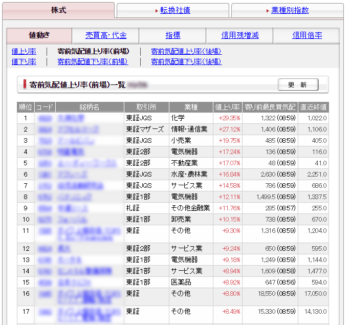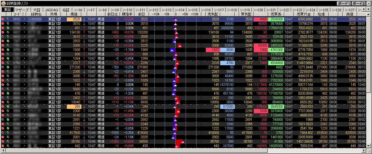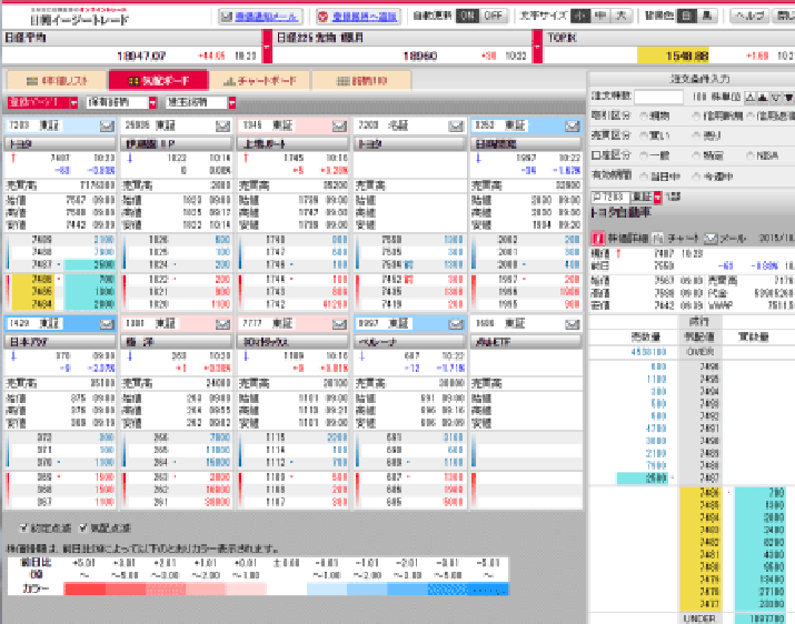 寄り付き前の気配や場中の売買高急増銘柄ランキング、年初来高/安値銘柄の一覧表示など、多彩なツールで市場のリアルな値動きをチェックすることができます。