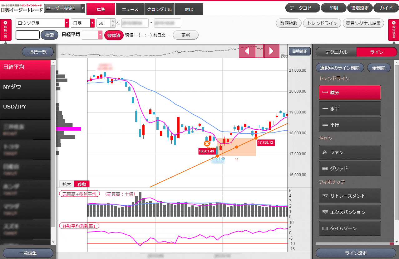 テクニカル分析や売買シグナル、複数銘柄の比較やニュース連携等、多様な分析を直感的に行えます。