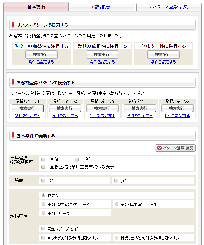 決算カレンダー・適時開示情報、株主優待カレンダー、銘柄条件検索、売買シグナル一覧などお客さまの目的にあわせて銘柄を探せるツールをご用意しています。