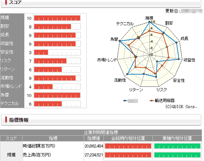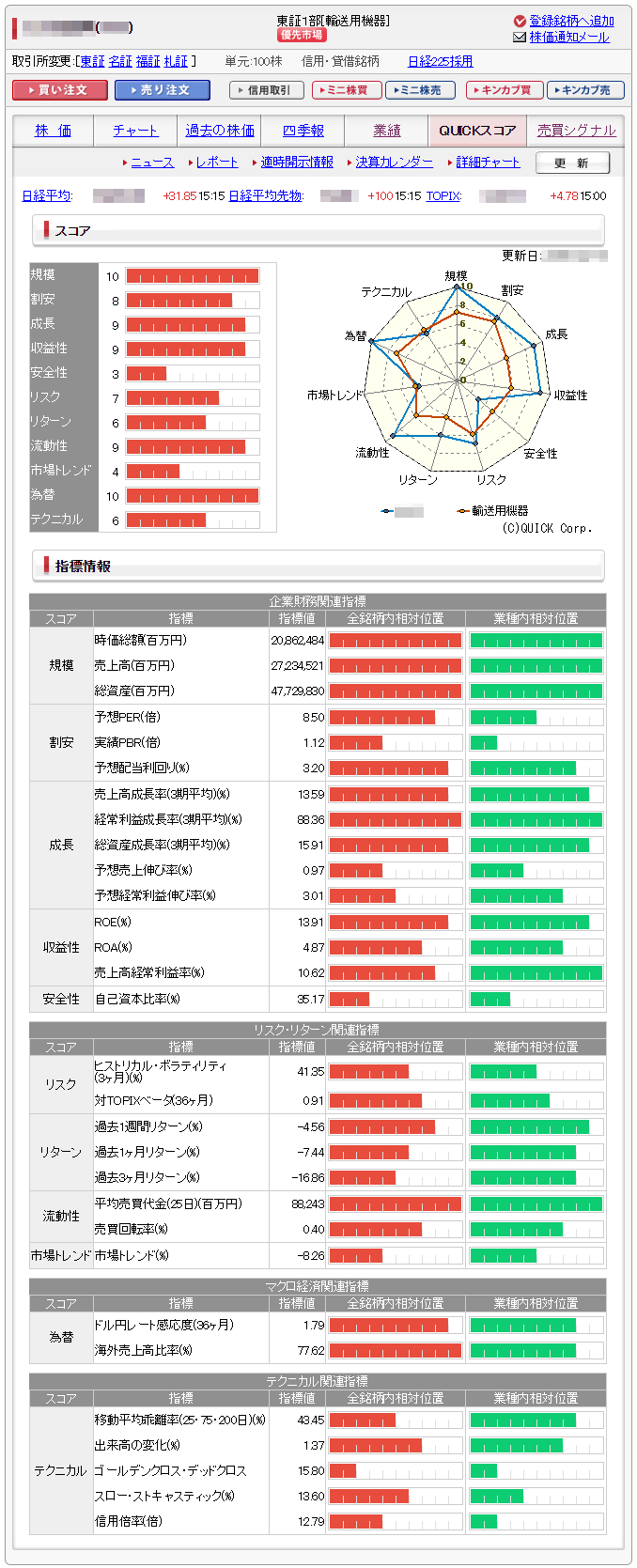 個別銘柄情報画面では、リアルタイムで株価や気配を確認でき、自動更新が可能です。配当利回りやPERなどの各種指標も合わせて表示されるほか、会社四季報や売買シグナル、QUICKスコアなどのツールもご利用いただけます。また、信用取引に活用できる「逆日歩予報」もご覧いただけます。