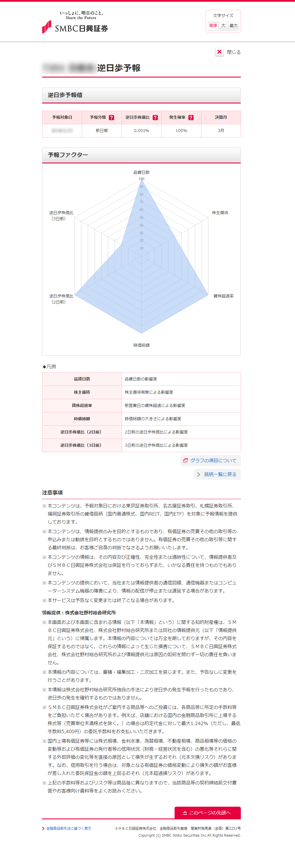 当ページの内容はSMBC日興証券が有価証券の売買その他取引等を誘引する又は投資勧誘を目的として提供するものではありません。投資判断の最終決定は、ご自身の判断と責任で行ってください。