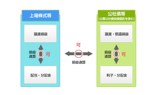 2016年以降は、「上場株式等」と「公社債等(公募公社債投資信託を含む)」の損益通算が可能になりました。