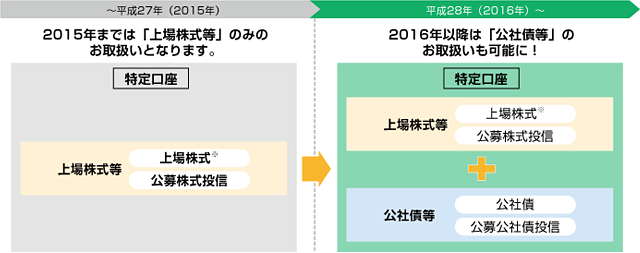 ポイント3.平成28年(2016年)以降は、「公社債等」も特定口座で取扱うことができるようになりました
