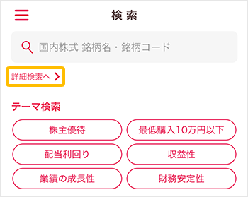 ①検索画面の「詳細検索へ」をタップします。